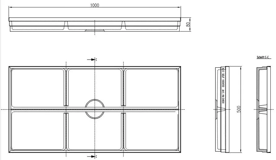 - Korytko z polimerobetonu ACO Vario (nr kat. 00400): Ekstremalnie solidna, nienasiąkliwa podstawa o wymiarach 100×50 cm i wysokości 80 mm. Wyposażona w elegancką i trwałą krawędź ze stali ocynkowanej. Posiada zintegrowane miejsce na odpływ wody (Ø 110).